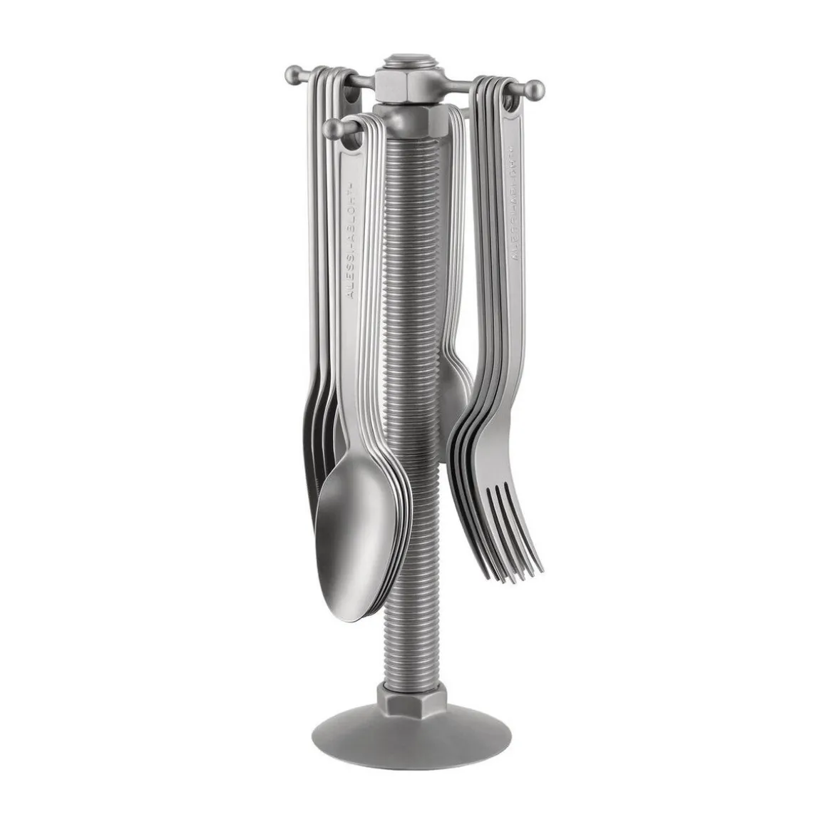 Das Besteck-Set aus der Serie Conversational Objects von besteht aus Besteckteilen, die hervorragend austariert sind und sich gekonnt führen lassen. Sie besitzen eine Öse, an der sie jederzeit am schraubenförmigen Besteck-Ständer aufgehängt werden können. Somit ist Ihr Besteck aufgeräumt und gleichzeitig griffbereit.