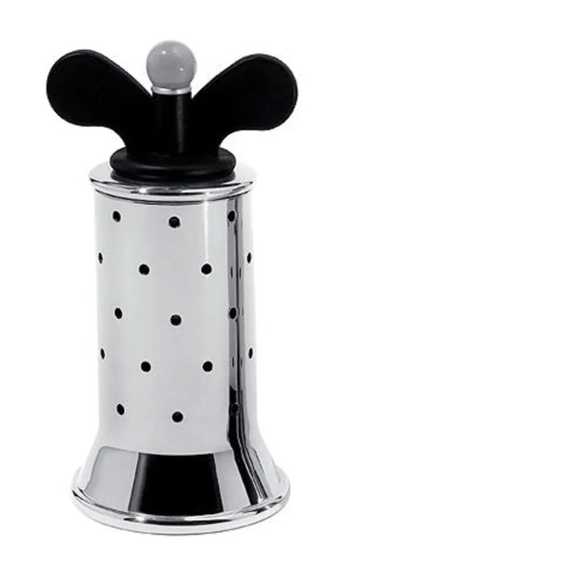 Die Pfeffermühle 9098, die Designer Michael Graves für das italienische Designhaus entwarf, begeistert Designfans rund um den Globus seit den 1980er- und 1990er-Jahren. Typische Designelemente sind geometrische Formen wie Kegel, Kugel und Zylinder. Sie ziehen sich durch die gesamte Kollektion. Sehen Sie sich den dazugehörigen Salzstreuer, die Zuckerdose, den Wasserkessel mit pfeifendem Vögelchen und das Rahmkännchen an. Jedes Stück für sich zieht alle Blicke auf sich. Denn Graves mixt Einflüsse aus Art-Déco, Pop-Art und Comic-Kunst in seinen Entwürfen, die heute echte Kultobjekte sind.