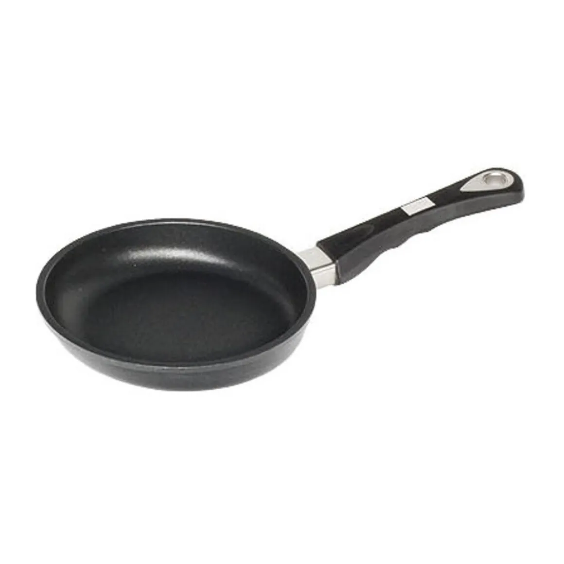 Schnelle Gerichte gelingen in der kleinen Pfanne hervorragend. Die flache Bratpfanne mit 20 cm Durchmesser ist beschichtet und damit für die fettarme Zubereitung bestens geeignet. Entdecken Sie bei AMT Gastroguss Spezial-Pfannen in Profi-Qualität. Eckige Grillpfannen in verschiedener Ausführung, Bräter oder runde Pfannen mit hohem Rand lassen keine Wünsche offen. Das reichhaltige Sortiment aus Aluminiumguss besitzt einen planen Boden, der die Wärme hervorragend speichert. Für die Bratpfanne erhalten Sie auch einen passenden Glasdeckel. Zum Schonen des Materials reichen 2/3 der maximalen Herdleistung beim Erhitzen aus.