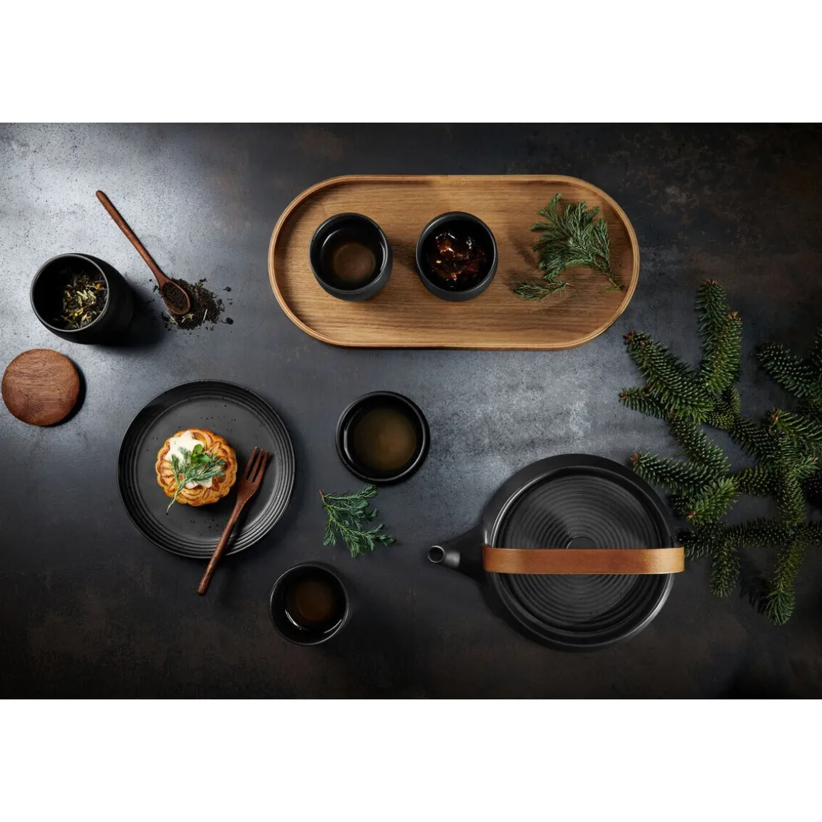 Der Dessertteller Japandi von vereint in sich die Stärken skandinavischer und japanischer Designästhetik. Eine klare Formsprache, ein zartes Linienrelief und die reaktive Glasur verleihen dem Geschirrstück einen einzigartigen Charme, der kleine Köstlichkeiten zum Tee verführerisch inszeniert.