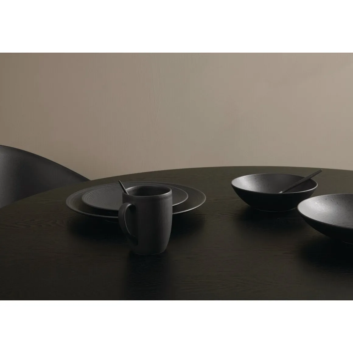Das praktische Geschirr-Set Bella Vista Schwarz von besticht durch seine schlichte Eleganz und den charmant gerillten Look im Inneren der Geschirrteile. So treffen Formklarheit und fühlbare Designliebe aufeinander und werden in sich zu einer schlüssigen Einheit.