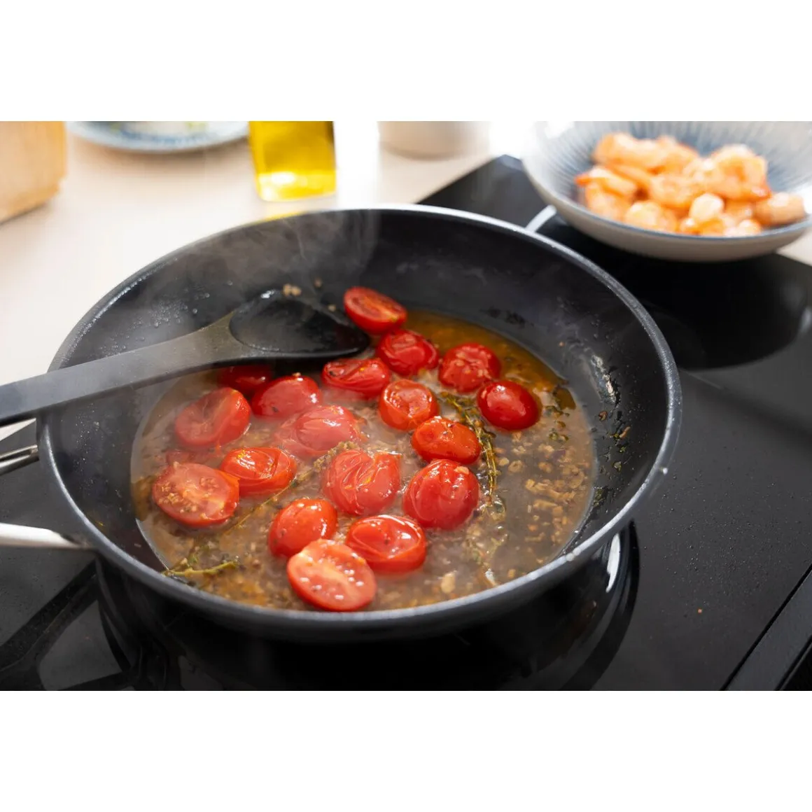 Der Wender Duracore von fühlt sich im Inneren Ihrer Pfanne oder Ihres Kochtopfes am wohlsten. Hier lässt er sich leicht führen und unter Ihre Speisen schieben, um sie dann gekonnt zu wenden.