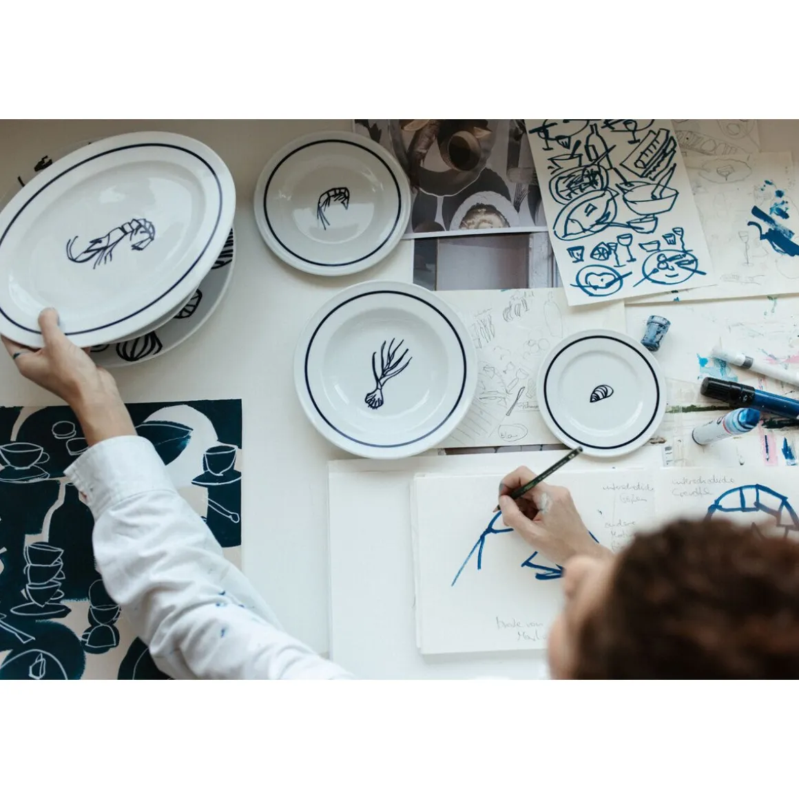 Mit der Platte Solid Color Brasserie Marine von reichen Sie Häppchen und Kuchenstücke im Glanz zeitgenössischer Kunst. Französische Kulinarik trifft auf die Klarheit des Bauhaus-Stils und künstlerische Lebendigkeit.