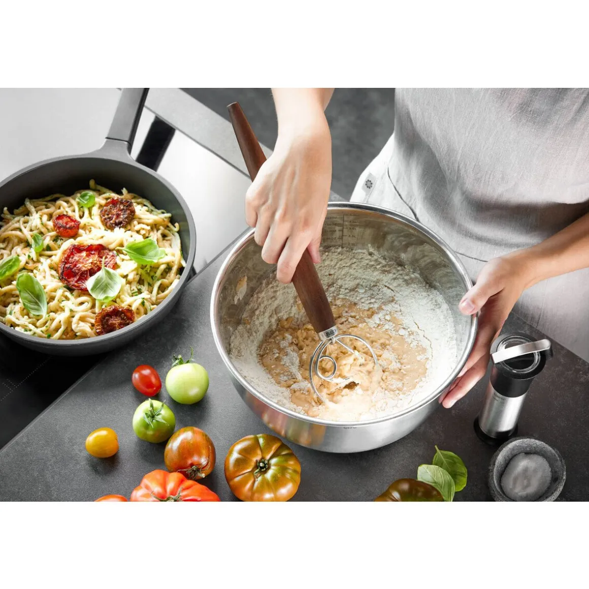 - eignet sich für Brot-, Pasta-, Pfannkuchen- oder Kuchenteig