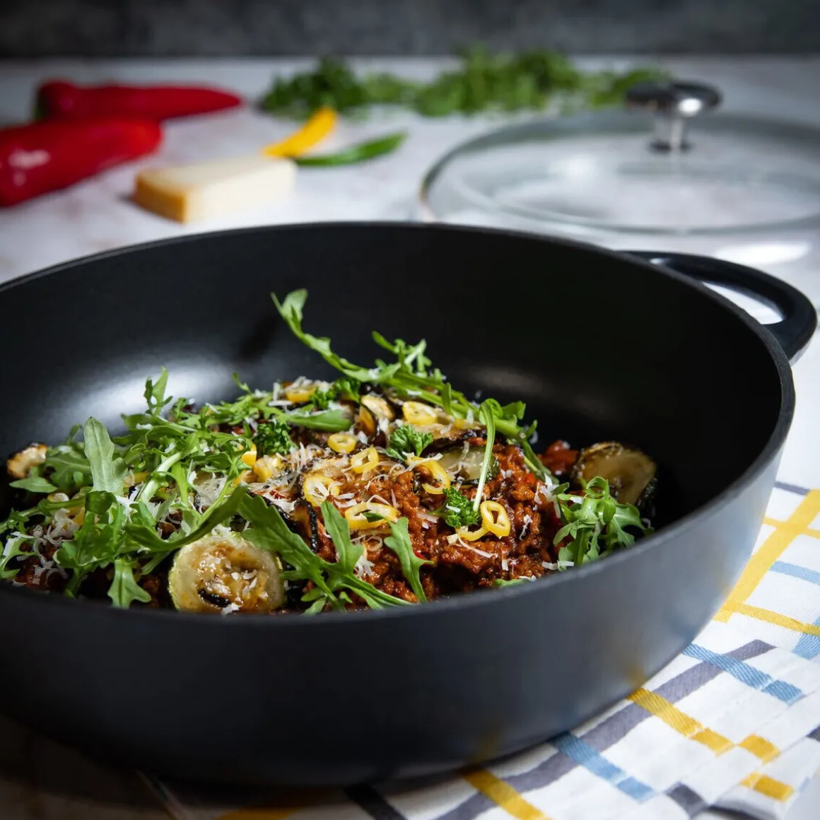 - Bauernpfanne mit Glasdeckel Provence aus emailliertem Gusseisen