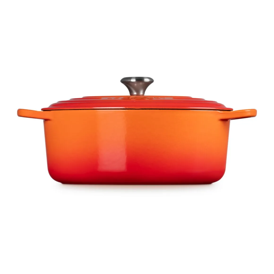 Der ovale, ofenrote Bräter mit Deckel der Serie Signature Ofenrot von zieht in Ihrer Küche alle Blicke auf sich. Das schöne Rot, sein wärmespeicherndes Gusseisen und seine Formsprache machen den Bräter zu einem dekorativen Küchen-Highlight, in welchem Sie sogar ganze Keulen zubereiten können. Nutzen Sie diesen Topf zum Schaffen verführerischer Genussmomente voller Aromaintensität.