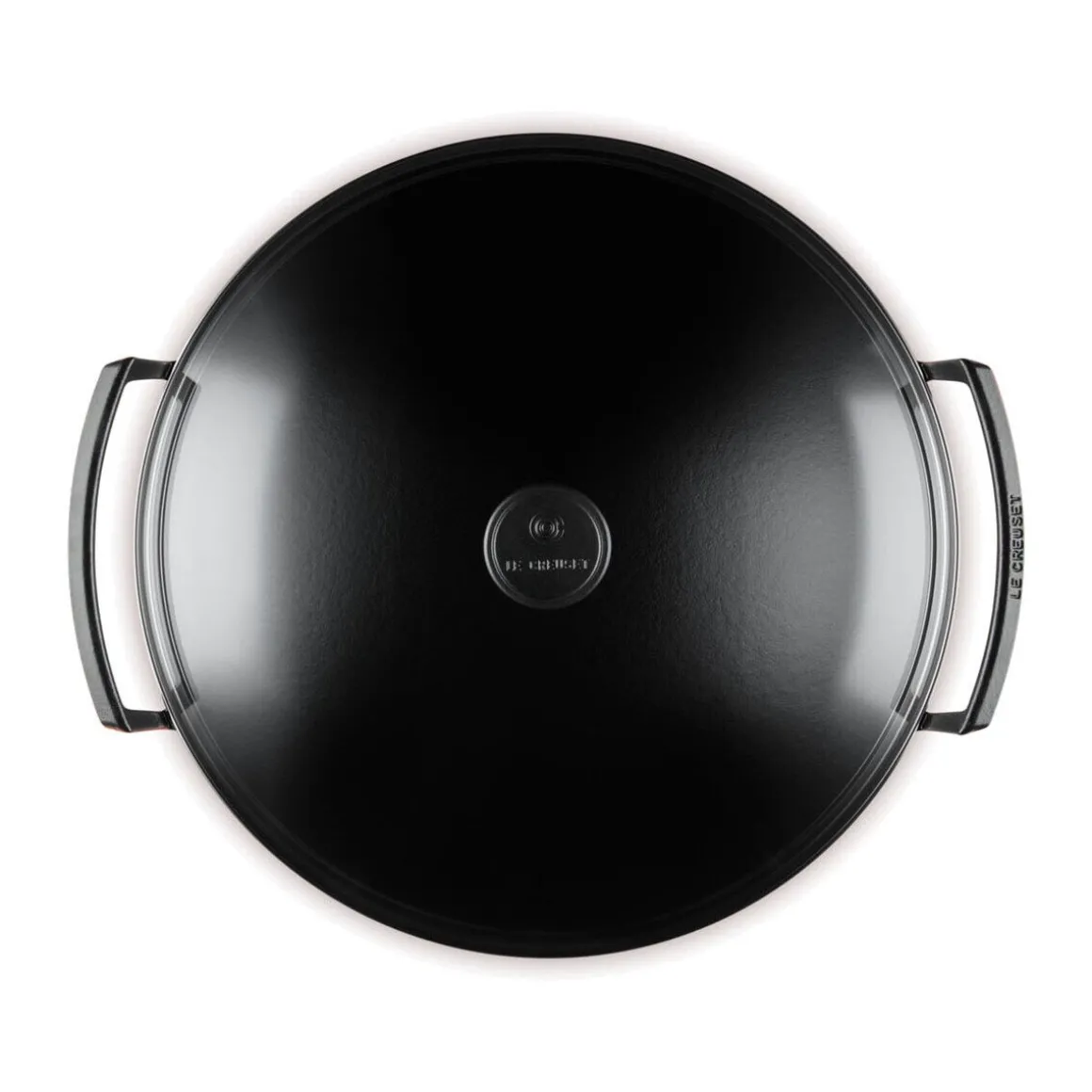 - Wok mit Glasdeckel aus robustem Gusseisen