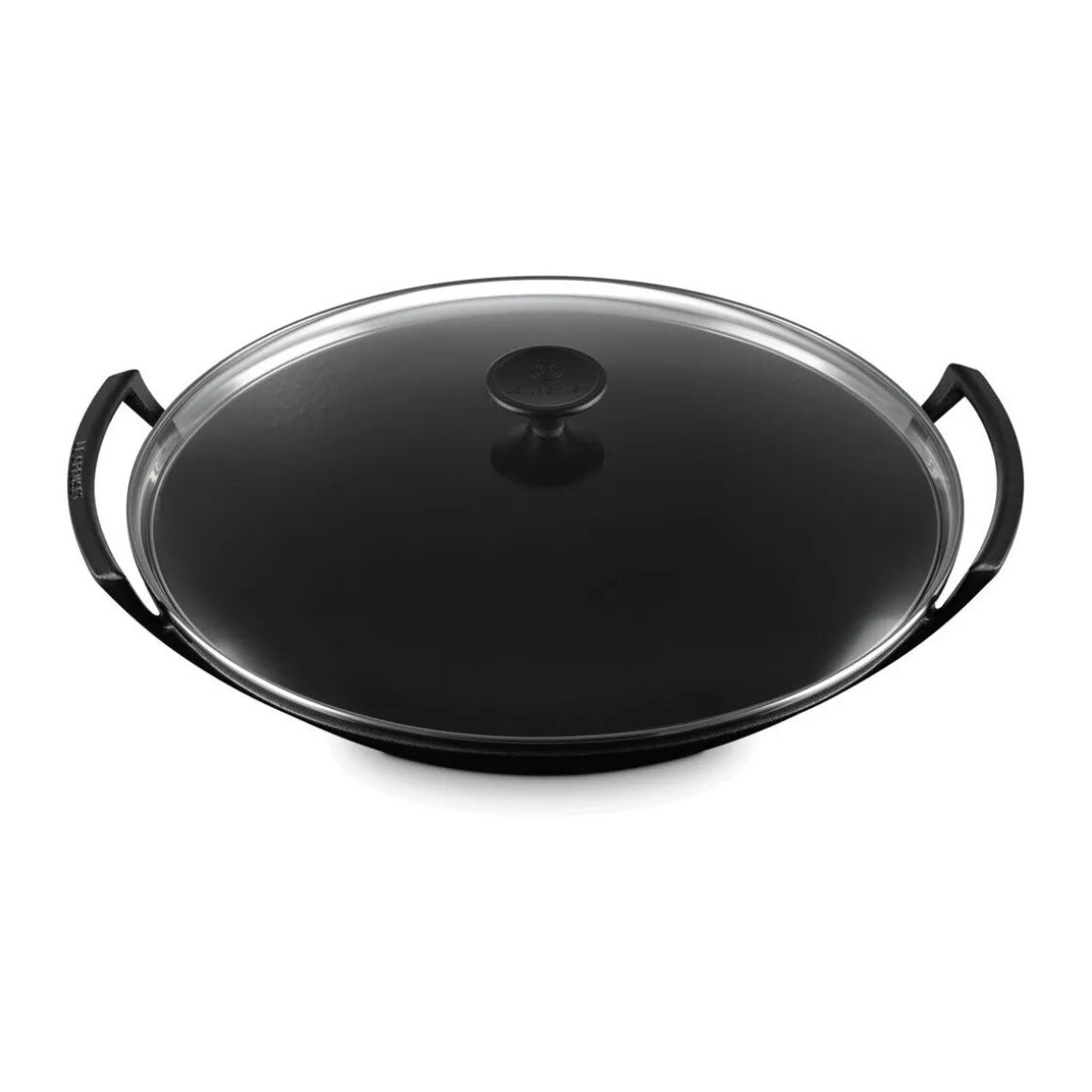 - Wok mit Glasdeckel Schwarz aus emailliertem Gusseisen