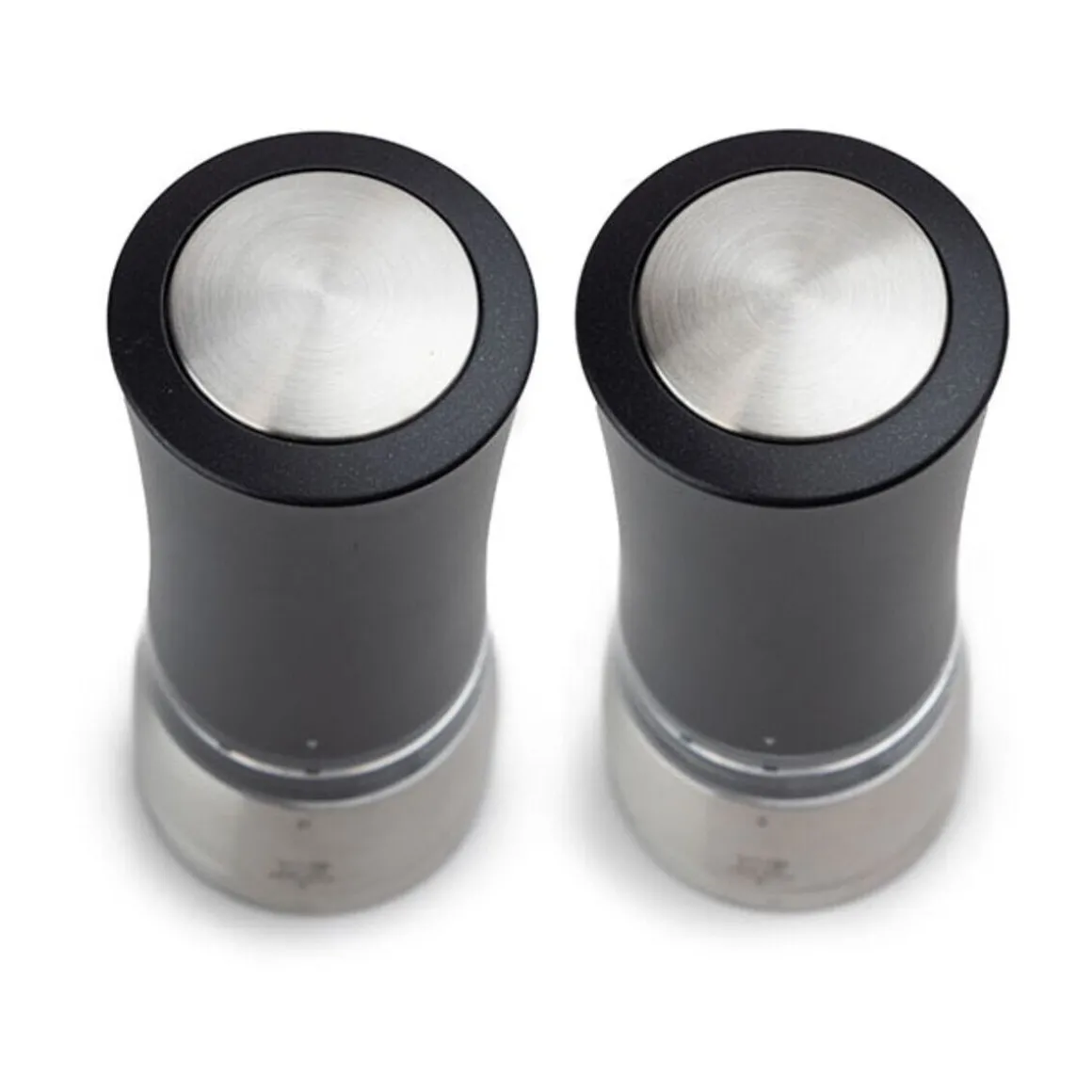 Die Pfeffer- und Salzmühlen Daman Elektrisch von kommen im praktischen Duo daher. Für Peugeot typisch sind sie mit dem u’Select-System ausgestattet, das die präzise Einstellung des Mahlgrades zulässt. Mit nur einem Knopfdruck lassen sie sich mit einer Hand bedienen und zeigen durch ihre pfiffige Beleuchtung genau mit wie viel Pfeffer oder Salz Sie gewürzt haben.