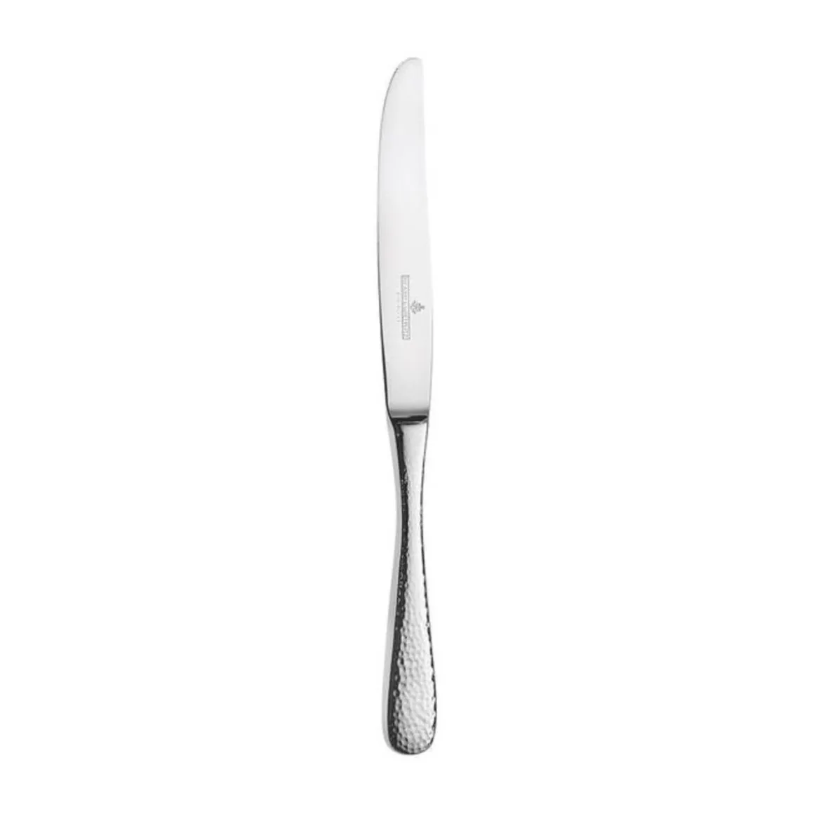 Klassische Form, ausgefallene Optik: Die Besteckserie Mia 6180 aus dem Traditionshaus kommt glänzend poliert mit edler Hammerschlagoptik auf den Tisch. Das Menümesser Mia 6180 liegt angenehm und perfekt ausbalanciert in der Hand.
