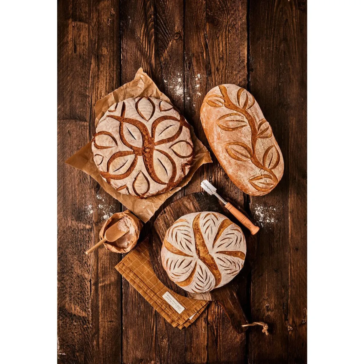 Mit dem Bäckermesser Laib & Seele von zaubern Sie hübsche Musterungen in Ihre Brote und Brötchen. So erhalten Ihre Backwerke eine ganz eigene Handschrift mit liebevollen Ornamenten in der Kruste.
