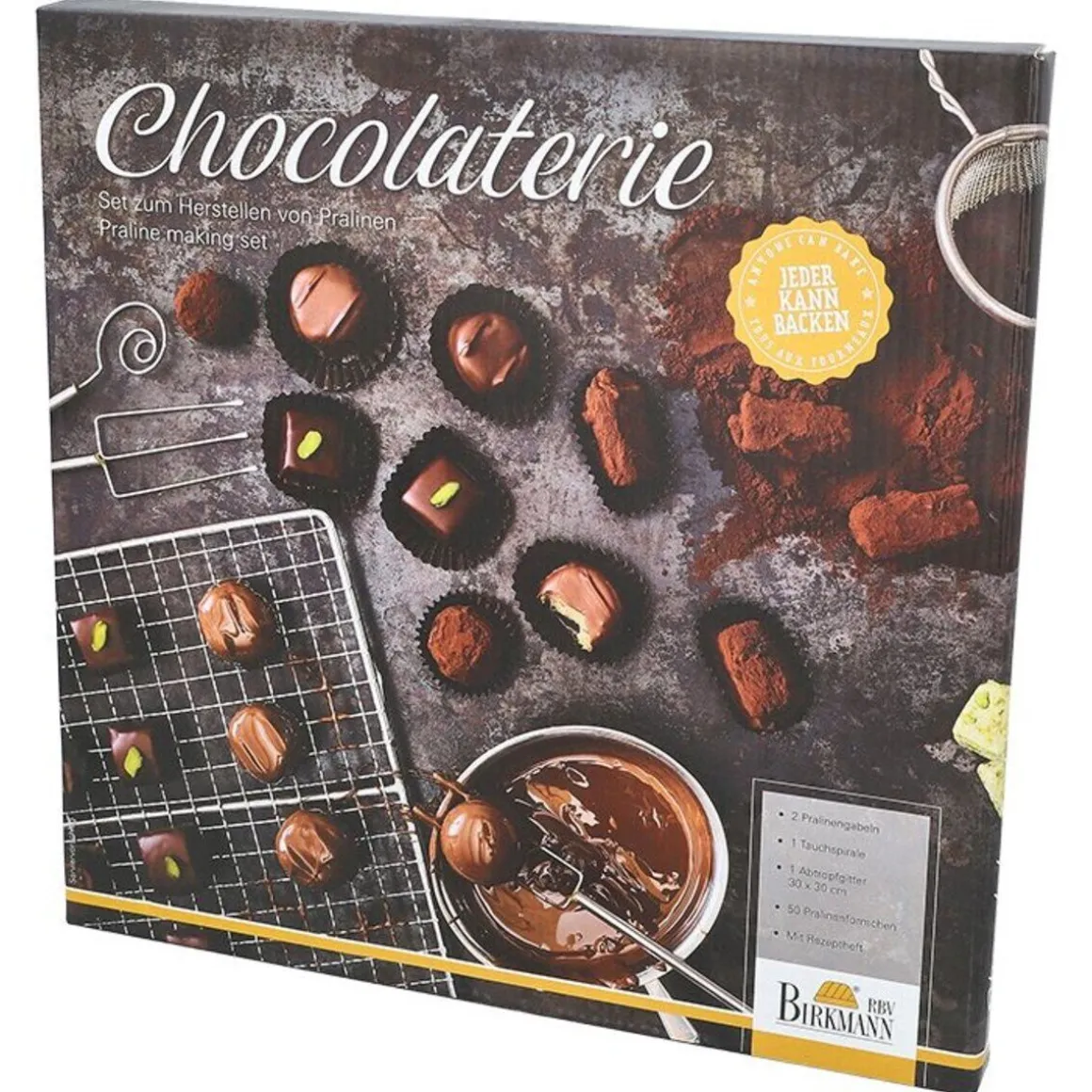 - mit 1x Abtropfgitter (30×30 cm), 2x Pralinengabel, 1x Tauchspirale, 50 Papierförmchen, 1x Rezeptheft