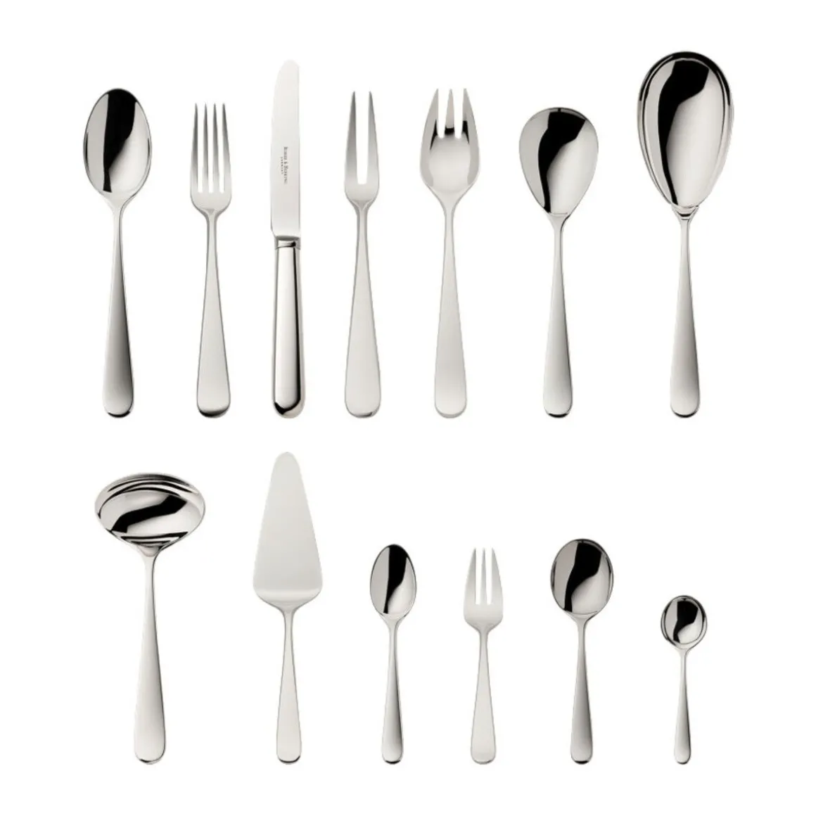 - mit 2x Fleischgabel, groß und je 1x Gemüselöffel, Gemüsegabel, Saucenlöffel, Servierlöffel, Tortenheber, Zuckerlöffel und Tassenlöffel