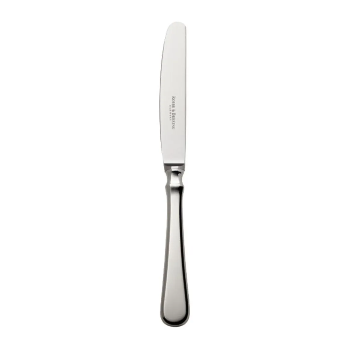Das Menümesser Spaten von Robbe & Berking wertet jedes hochwertige Besteck auf. Das Menümesser bietet eine angenehme Breite von 1,5 cm und eine praktische Länge von 22,4 cm. Es ist daher besonders handlich und zeigt sich mit seiner Spülmaschinenfestigkeit auch sehr pflegeleicht. Das edle 150 g versilberte Material bietet einen glamourösen Look und eine hochwertige Qualität. Es handelt sich um ein Hohlhaftmesser, welches durch die glänzend polierte Oberfläche einen eleganten, klassischen Stil definiert.