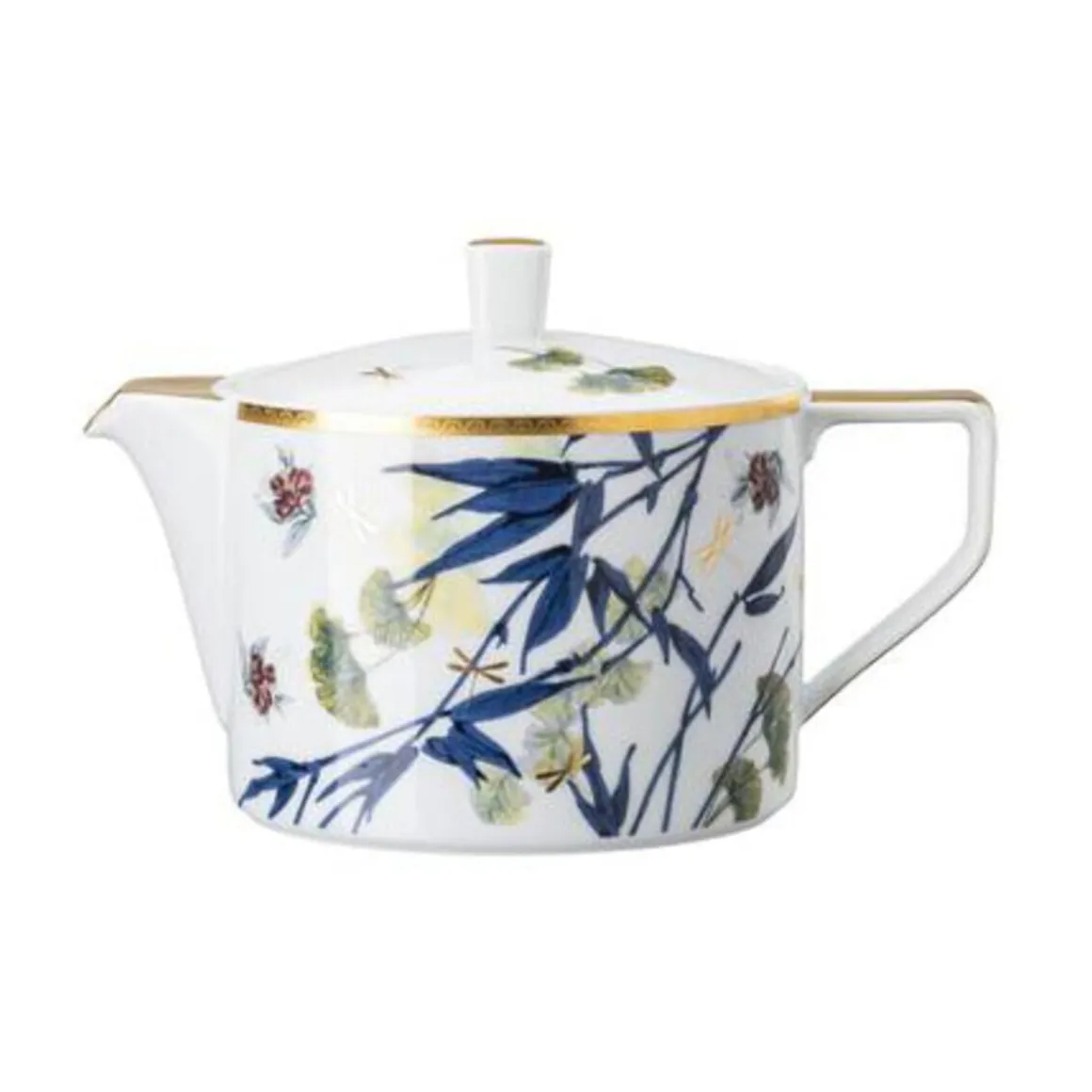 Mit der Teekanne der Serie Heritage Turandot White von servieren Sie Tee umwoben von der blühenden Pflanzenpracht des Orients. Abgeschlossen wird die Konzeption des Porzellans mit der klaren Formsprache durch goldene Akzente in Form von umherschwirrenden Libellen und Bändern.