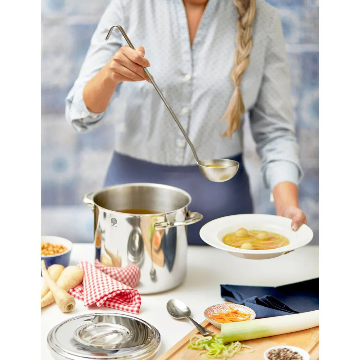 Mit dem Suppentopf Romana i von versorgen Sie sich und Ihre Lieben an kalten Tagen mit wohltuenden Suppen. Die heiß ersehnte innere Wärme lässt sich zeitnah auf den Tisch bringen, denn der Sandwichboden des Topfes hat einen äußerst leitfähigen Kupferkern, der Ihren Eintopf bei niedriger Energiezufuhr äußerst schnell gelingen lässt. Kochen Sie mit diesem Suppentopf zeit- und energiesparend.