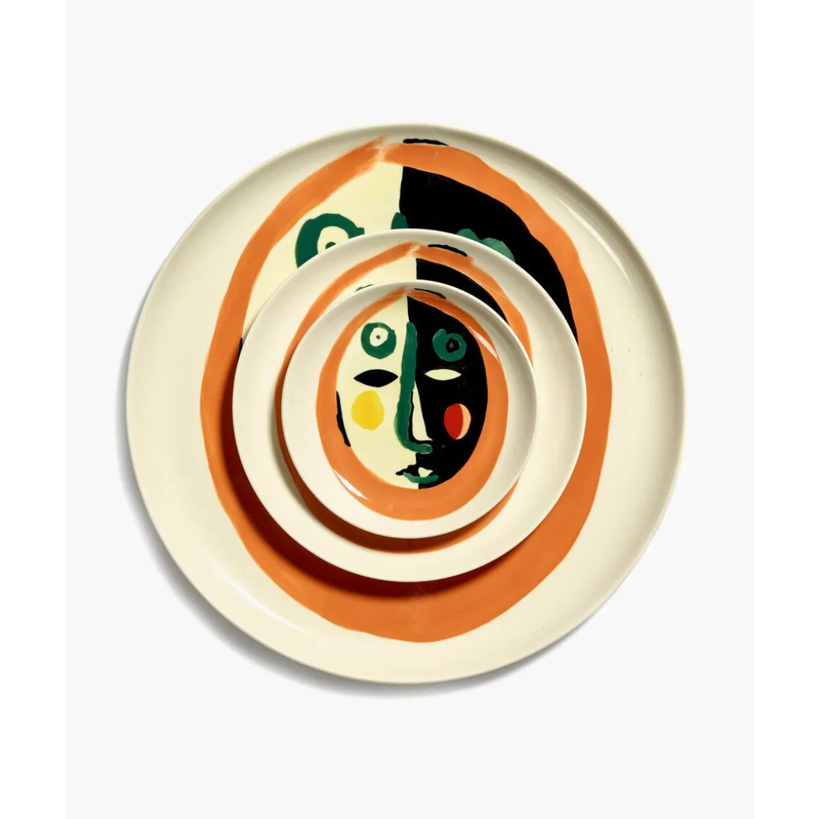 Mit dem Dessertteller mit Gesicht Feast von servieren Sie süße Verführungen auf einem abstrakt ausgestalteten Motiv. Der Teller mit der schlichten Formsprache wirkt durch die unkonventionelle Darstellung eines Gesichts besonders lebhaft und kunstvoll.