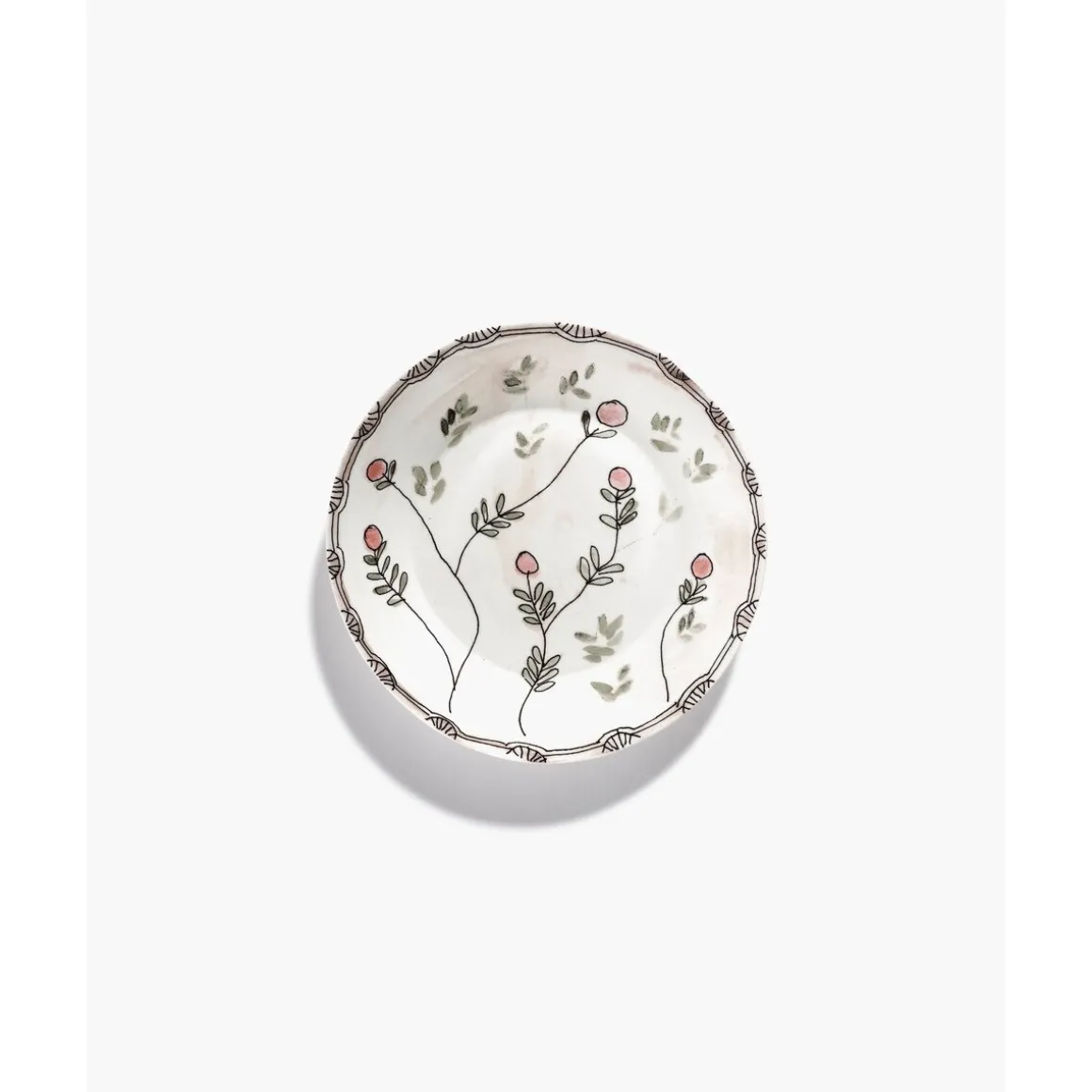 Der tiefe Teller Midnight Flowers Mirtillo Nude von ist von einem floralen Dekor geprägt, das von Hand illustriert und damit einzigartig ist. Jeder Teller lässt eine einmalige Blumenwiese auf Ihrer Tafel entstehen.