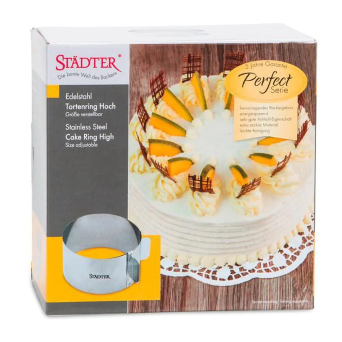 Mit dem hohen Tortenring von gelingen selbst mehrstöckige Torten und cremige Verführungen mühelos. Einfach den glänzenden Ring zum Backen und zum Befüllen um die Torte legen, schon wird Ihr Back- und Zierprozess von Erfolg gekrönt sein.