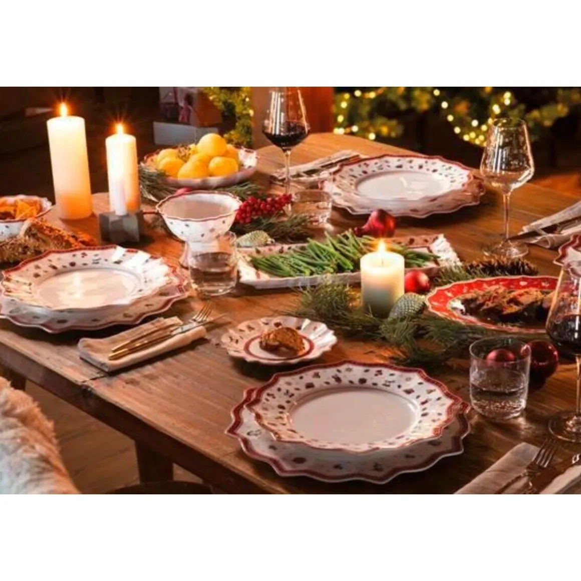 Zu Tisch! Verleihen Sie Ihrem Esstisch eine weihnachtliche Stimmung mit dem festlichen Brotteller von in verspielter Papptelleroptik. Der Teller ist Teil der hochwertigen Weihnachtsserie Toy’s Delight. Mit kleinen festlichen Motiven verziert, überzeugt der Teller zudem durch seine hochwertige Verarbeitung aus Porzellan. Er misst 17 cm im Durchmesser und sollte in Handarbeit gewaschen werden.