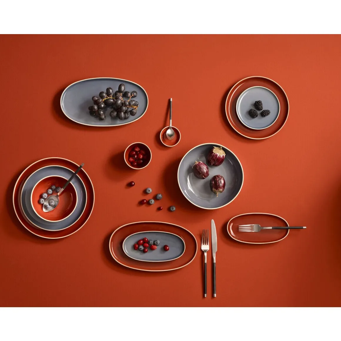 Mit der Platte Semana Sepia von bringen Sie den Charme der Ozeane auf den Tisch. Die Farbgebung der kühl anmutenden Platte ist von Tintenfischen inspiriert und eignet sich hervorragend für alle, die gerne mediterrane Gerichte oder Sushi anrichten. Zaubern Sie mit diesem Geschirrstück ein Tischbild, das einen Hauch des Meeres mit sich bringt.