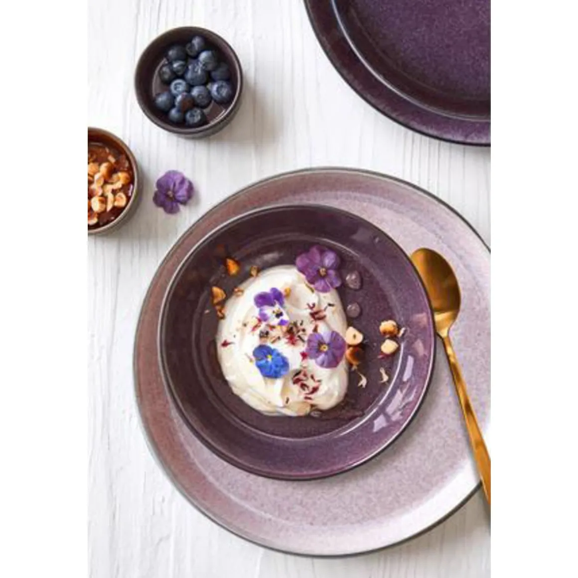 Dieser blickfangende Teller Gastro von bringt faszinierende Farbvielfalt auf Ihren Tisch. Die lila und schwarzen Farbtöne, die in variierenden Nuancen ineinander übergehen und sich gegenseitig kontrastieren, entstehen durch eine reaktive Glasur, die bei jedem Glasurprozess anders mit dem Steingut reagiert. So entsteht ein einzigartiger Look, der Ihrem Tisch das gewisse Etwas verleiht.