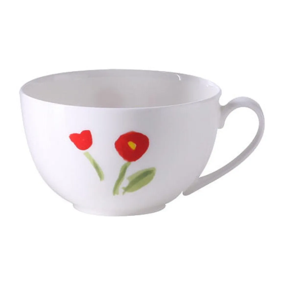 Die Kaffeetasse Impression Rot von verwandelt Ihre Kaffeetafel auf dezente Weise in eine Wiese voll bunter Aquarellblumen. Das robuste Porzellan wird an der Außenseite von einer solchen Blume geziert, wodurch das klare Weiß einen belebenden Akzent erhält.