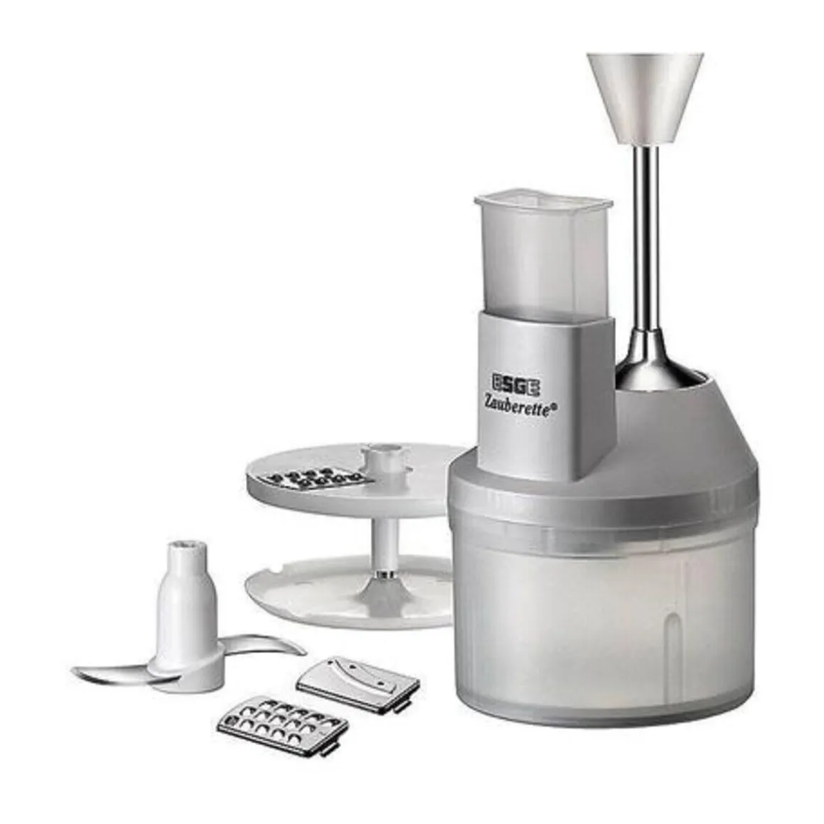 Die Zauberette von vereint sich mit dem Zauberstab zu einer unschlagbaren Einheit. Gemeinsam zerkleinern diese beiden Kraftpakete Ihre Zutaten ganz nach Ihren Wünschen und passen sich mit der Art des Schneidens und Raspelns Ihren Vorstellungen an. Einfach die gewünschte Schneide-Scheibe einsetzen und den Zauberstab auf die Zauberette setzen.