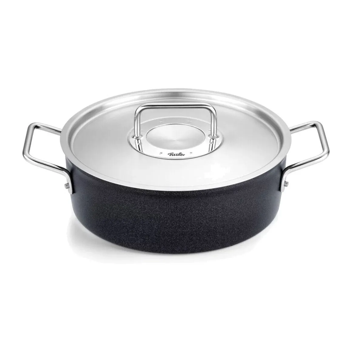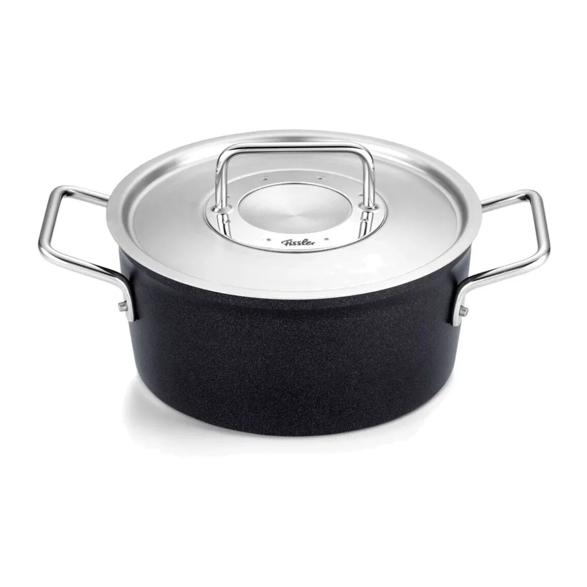 - besteht aus einem Kochtopf (20 cm), einem Bratentopf (24 cm) und einer Stielkasserolle (18 cm)