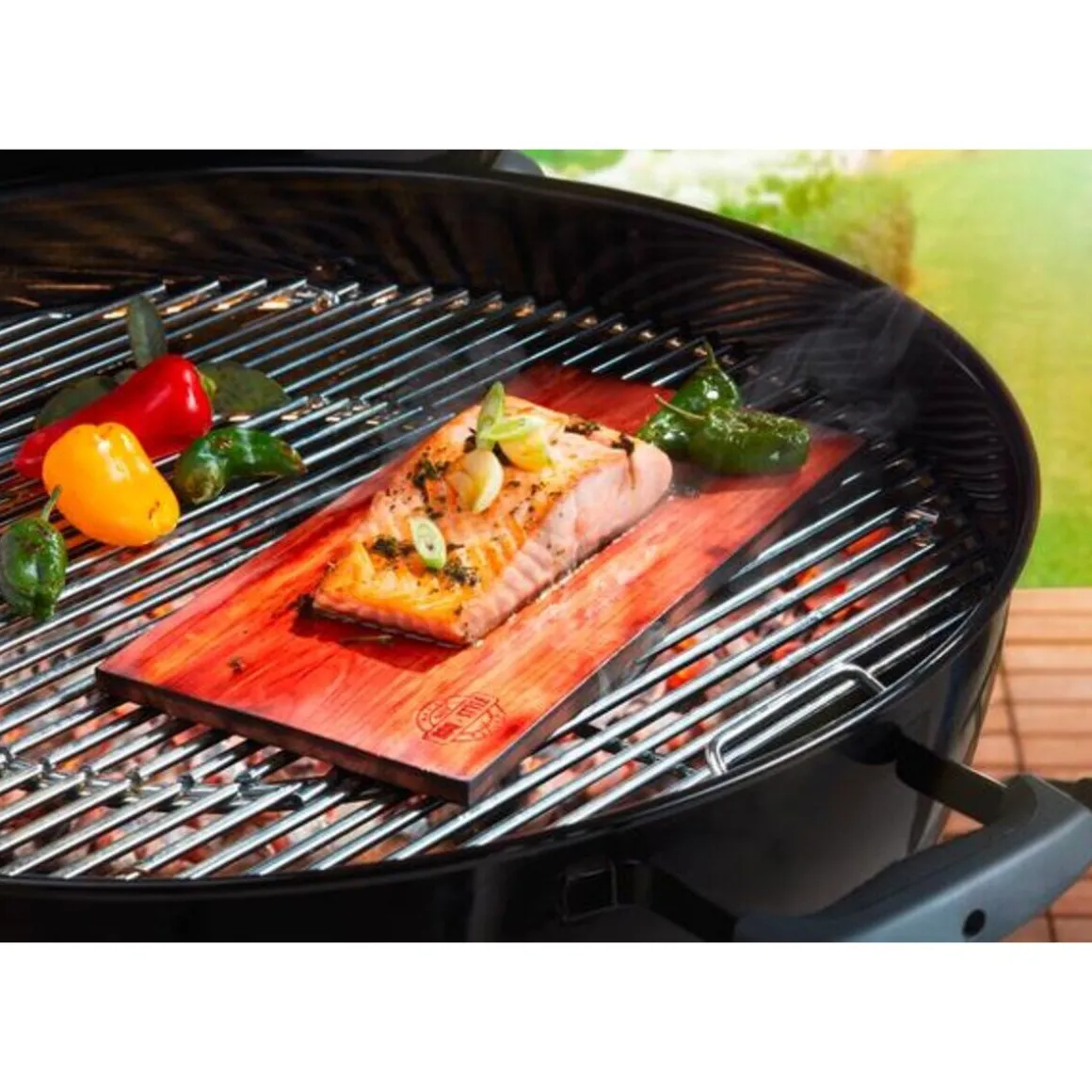Das aus Zedernholz gefertigte Grillbrett BBQ von sorgt für ein einzigartiges Raucharoma von Fisch, Fleisch und Gemüse.