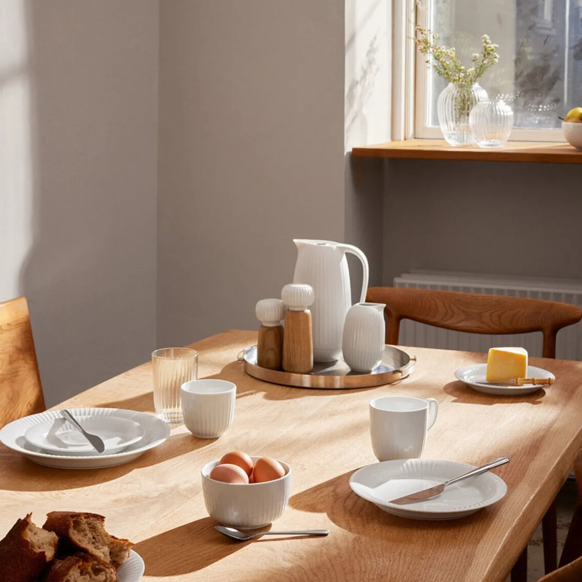 Die weiße Isolierkanne Hammershoi von ist beim Brunch mit Freunden oder der Familie nicht wegzudenken. Sie begeistert durch ihre hohe Isolierleistung und die vertikalen Linien, die ihr eine besondere Optik sowie Haptik verleihen.