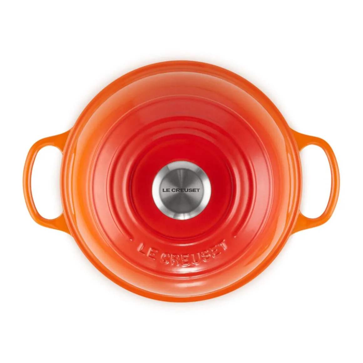 Der Brot Bräter Signature Ofenrot von begeistert durch seine leuchtende Farbgebung und die klassische Formsprache. Der Kuppeldeckel sorgt dafür, dass der Dampf im Inneren zirkulieren kann und der Teig aufgeht, während das Gusseisen die Hitze homogen verteilt und so für ein ausgewogenes, gesundes Backergebnis sorgt.