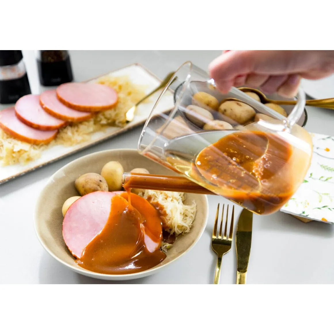 Nutzen Sie die praktische Fett–Trenn–Kanne der Marke und genießen Sie entfettete Suppen, Soßen und Fonds.