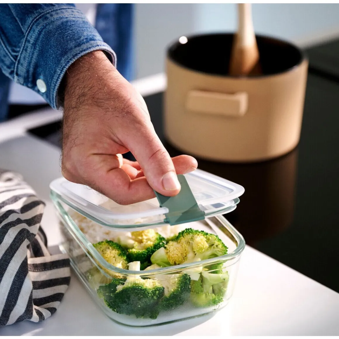 - stapelbare Glas Frischhaltedose EasyClip Nordic Sage