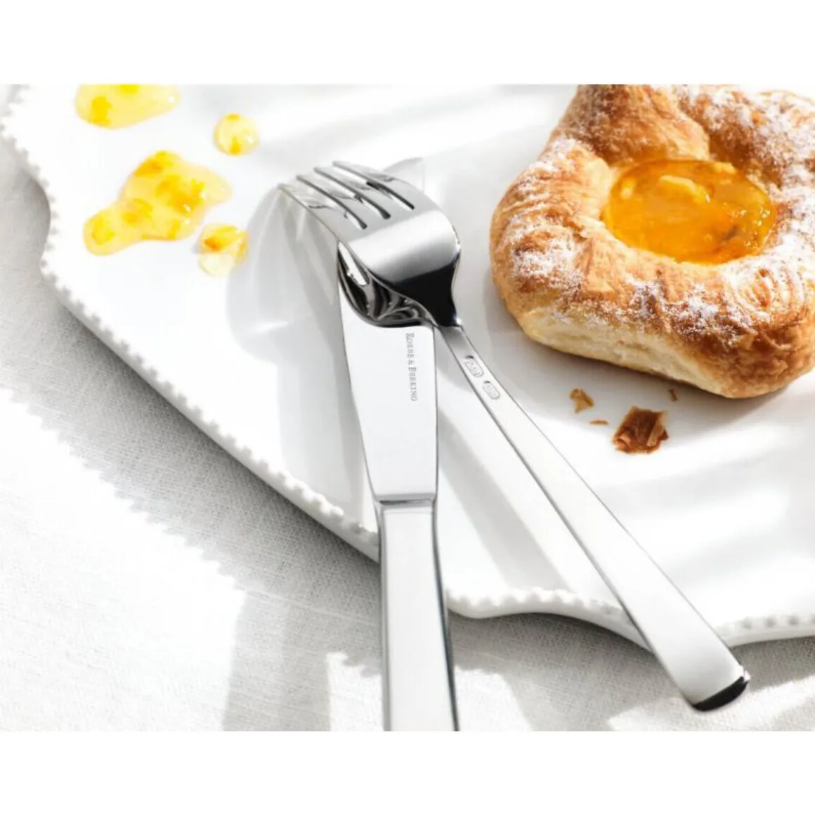 Das zurückhaltende Design und der elegante Stil des Besteck-Sets sind geometrisch und grafisch. Die Formsprache harmoniert ausgezeichnet mit jeder Art Tischdekoration und jedem Tafeldekor. Abgerundete Griffenden machen das Menübesteck zu echten Handschmeichlern – Messer, Löffel und Gabeln sind perfekt ausbalanciert und liegen angenehm in der Hand.