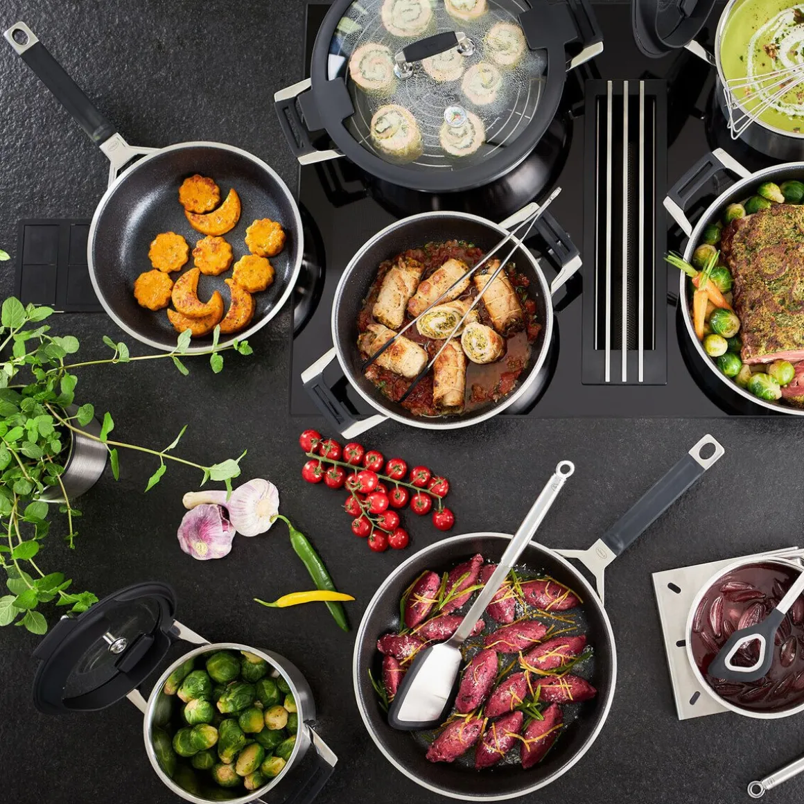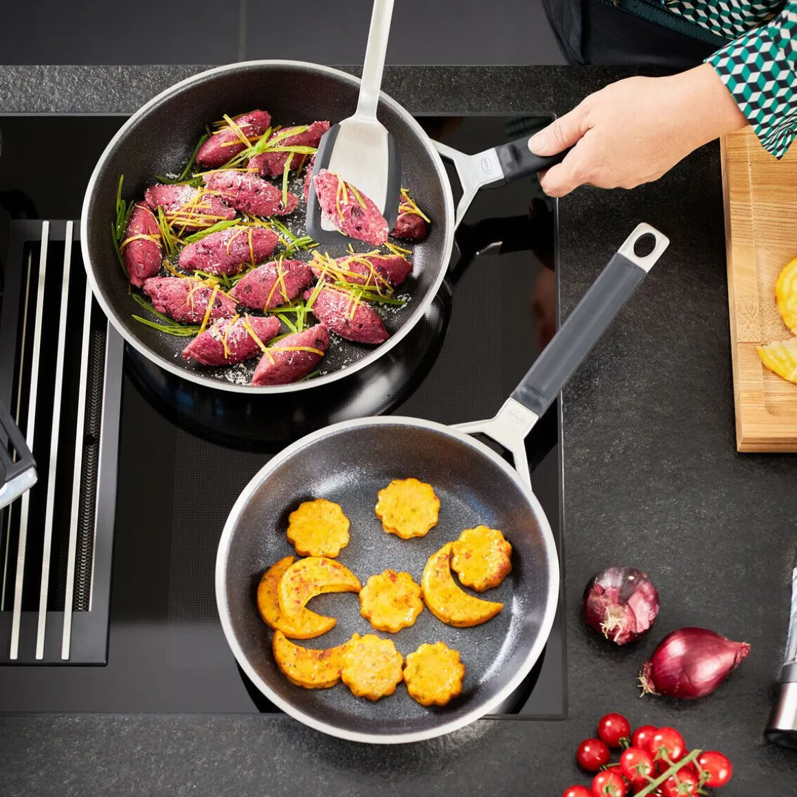 - selbst Edelstahl-Küchenhelfer in der Pfanne verwendbar