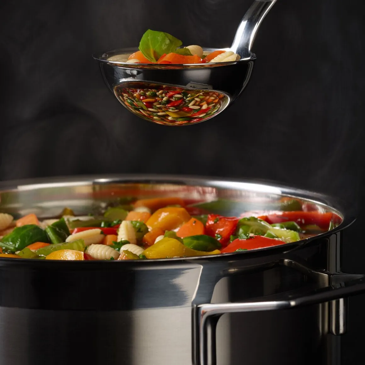 Für Suppen, Reis und Gemüse – der praktische Schöpflöffel von überzeugt auch nach langer Anwendung als edler Küchenhelfer bei Ihnen Zuhause.