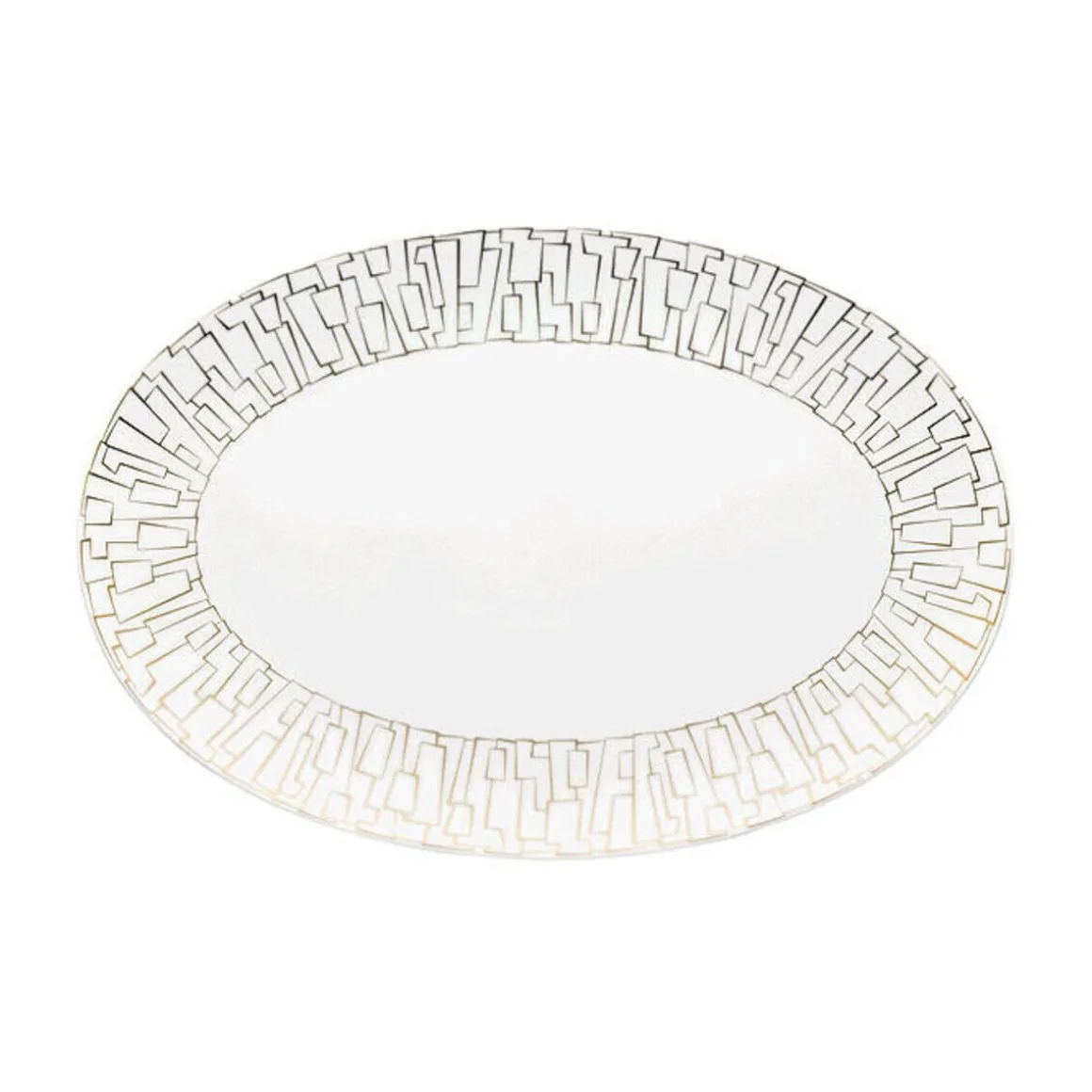 In der Geschirrkollektion TAC Skin Gold von vereint der renommierte Designer Walter Gropius einfache Formen aus der Geometrie mit unwiderstehlichen Akzenten aus Gold.Die ovale Platte bietet vielfältige Möglichkeiten zum Servieren und Drapieren Ihrer Speisen, Häppchen oder Kuchen. Das weiße Porzellan ist am Rand verfeinert mit einem filigranen Golddekor, das sich mosaikartig verzweigt.