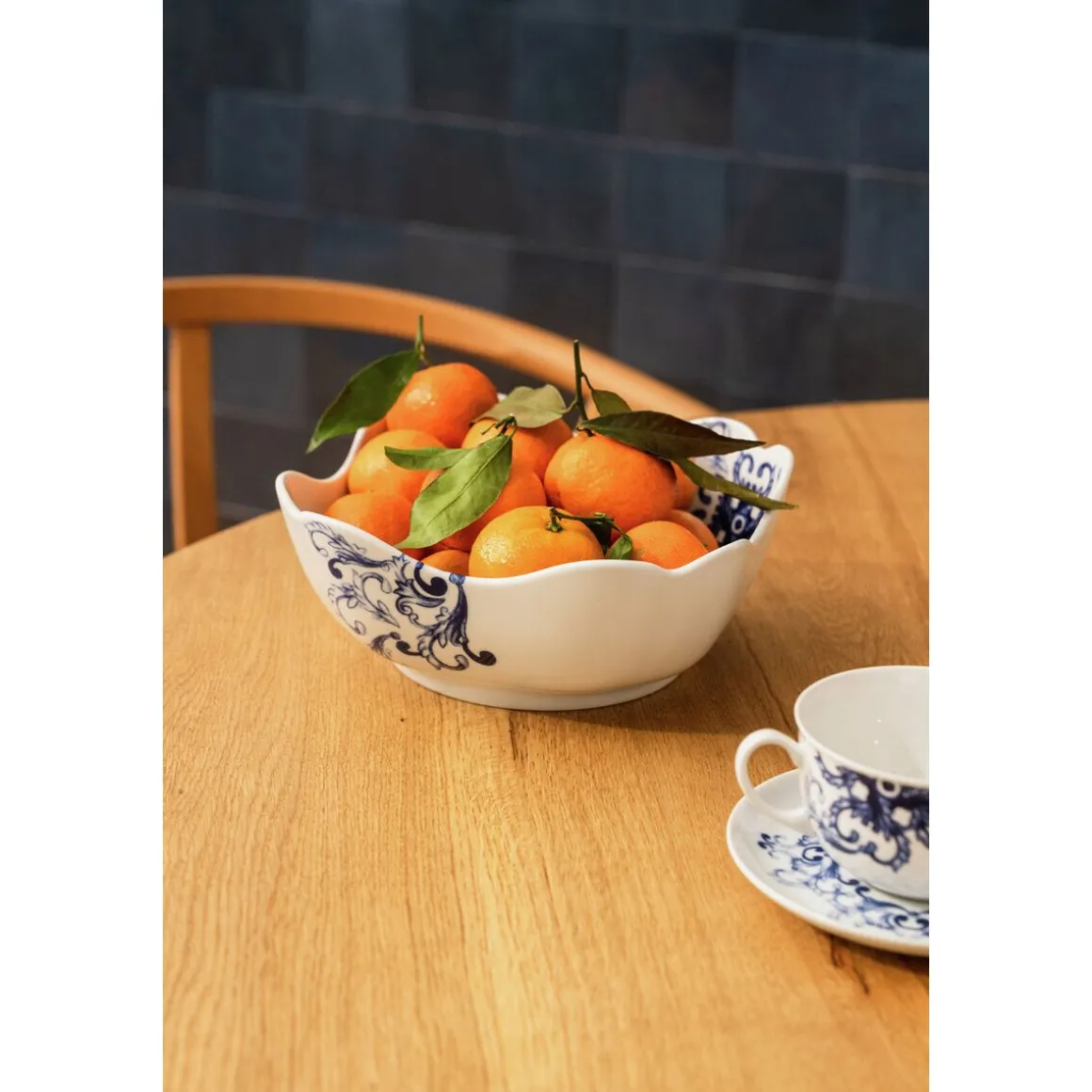 Mit der Schüssel True Blue von entführen Sie Ihre Gäste in eine längst vergangene Zeit. Die Formsprache des Stücks wirkt historisch bis opulent, während das stark auftretende und dann sanft verblassende Dekor für eine prachtvoll verspielte Anmutung sorgt. Kredenzen Sie Salate, Reis oder Kartoffeln durch diese Schale mit verführerischem Vintage-Charme.
