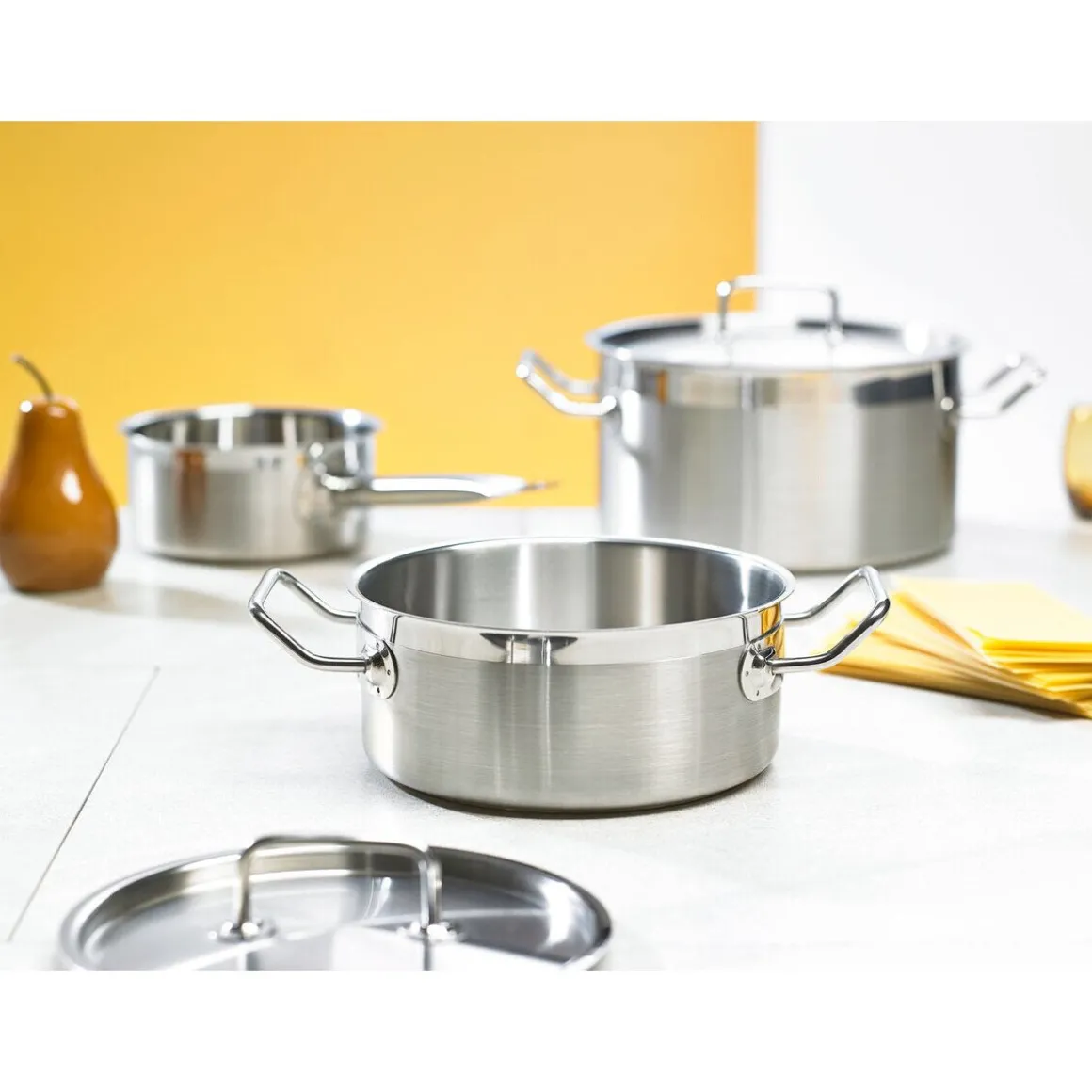 Das Meister-Set Profi-Line i von begeistert durch seine hohe Wärmeleitfähigkeit, die ein energie- und nährstoffschonendes Kochen ermöglicht. Das hochwertige Material reagiert schon auf kleinste Veränderungen in der Temperatur und ist auch bei niedriger Energiezufuhr ein Garant für ideale Ergebnisse mit vollem Geschmack.