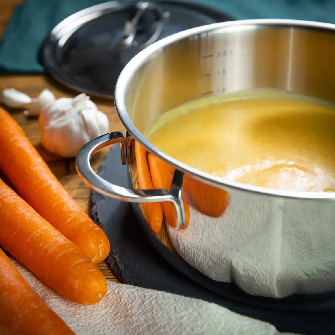 - 5-Lagen-Mehrschichtmaterial aus Edelstahl und Aluminium garantiert eine optimale Wärmeverteilung