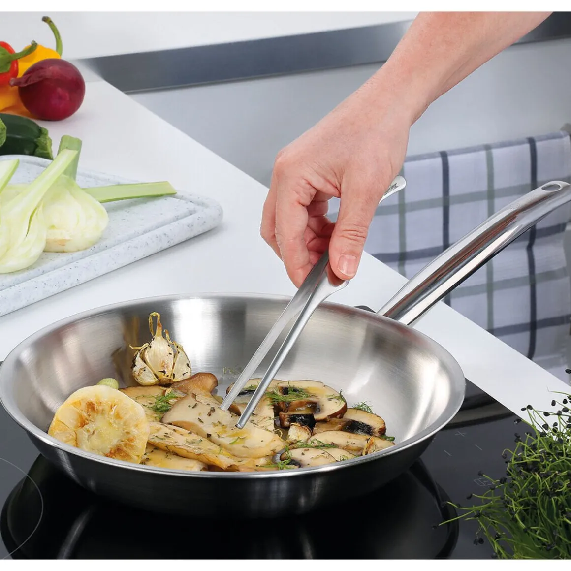 - robuster Küchenhelfer zum schnellen und gleichmäßigen Anbraten leckerer Zutaten