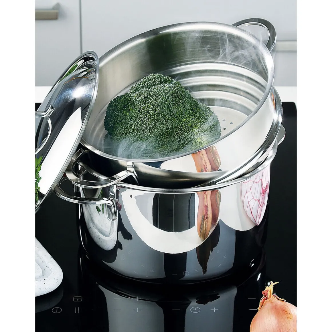 - knackiges, vitaminreiches Gemüse dank des edlen Dämpfaufsatzes