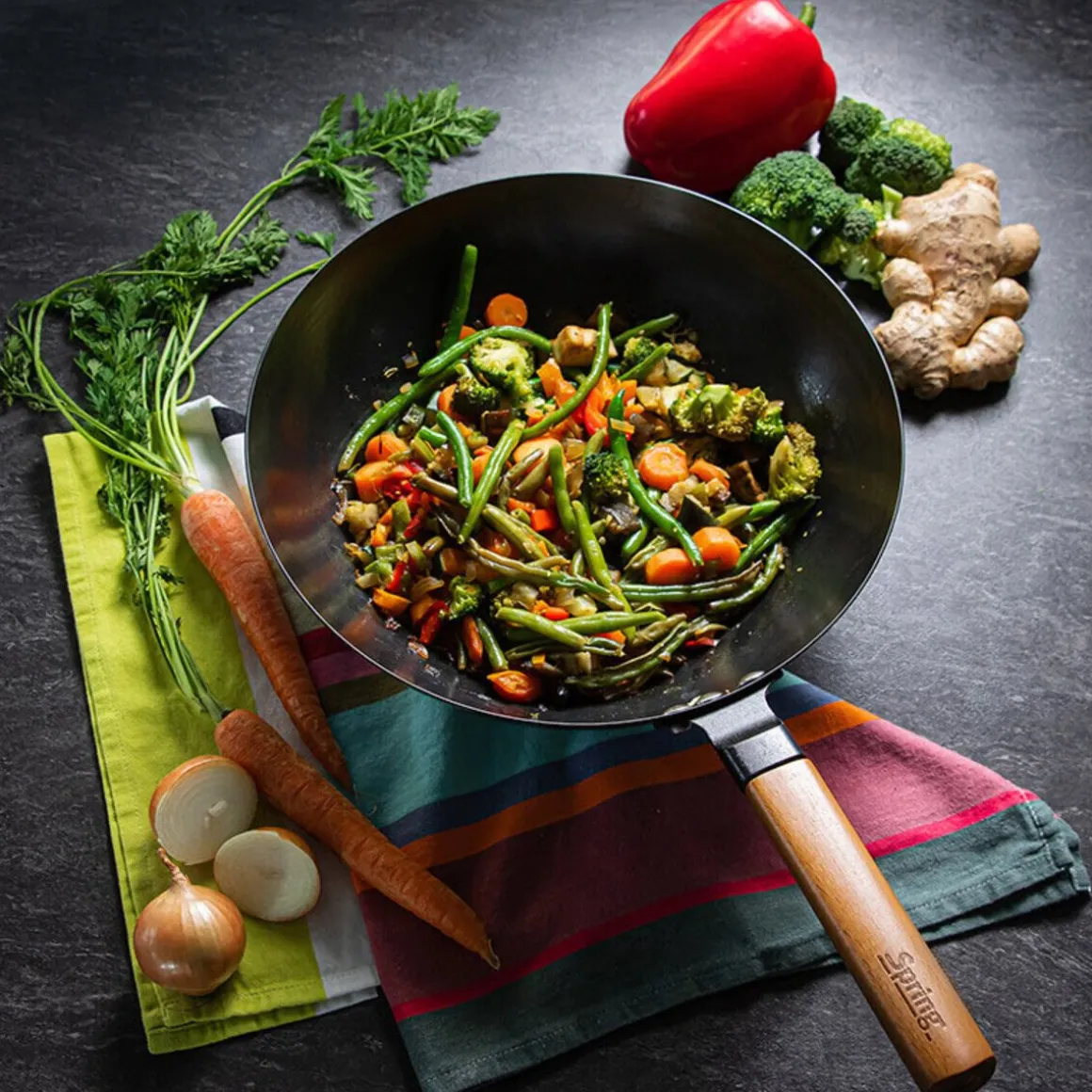 - Wok Canton mit einem Griff aus Buchenholz mit einzigartiger Maserung