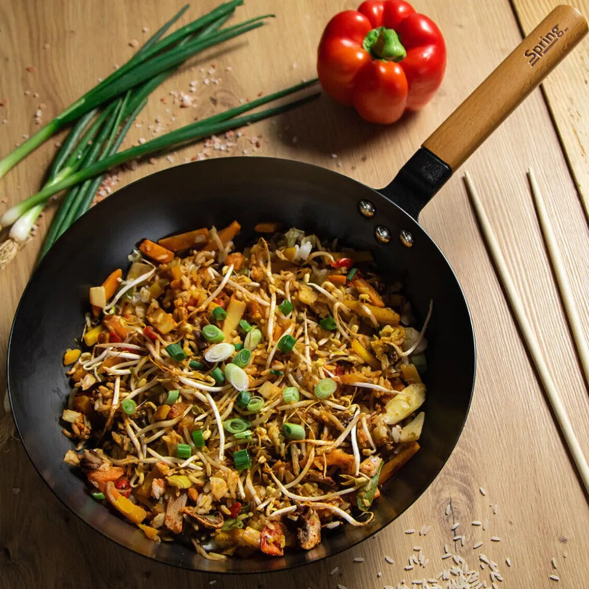 Die Wokpfanne Canton von eignet sich hervorragend zur Zubereitung von verführerischem Pad Thai oder einer würzigen Gemüsepfanne im Thai-Style. Das Zentrum des Woks wird besonders heiß, wodurch ein schnelles Anbraten bei hohen Temperaturen möglich wird. So bleiben die Nährstoffe von Gemüse erhalten und Fleisch behält seine Saftigkeit. Bringen Sie mit diesem Wok den kulinarischen Charme Asiens in Ihre Küche.