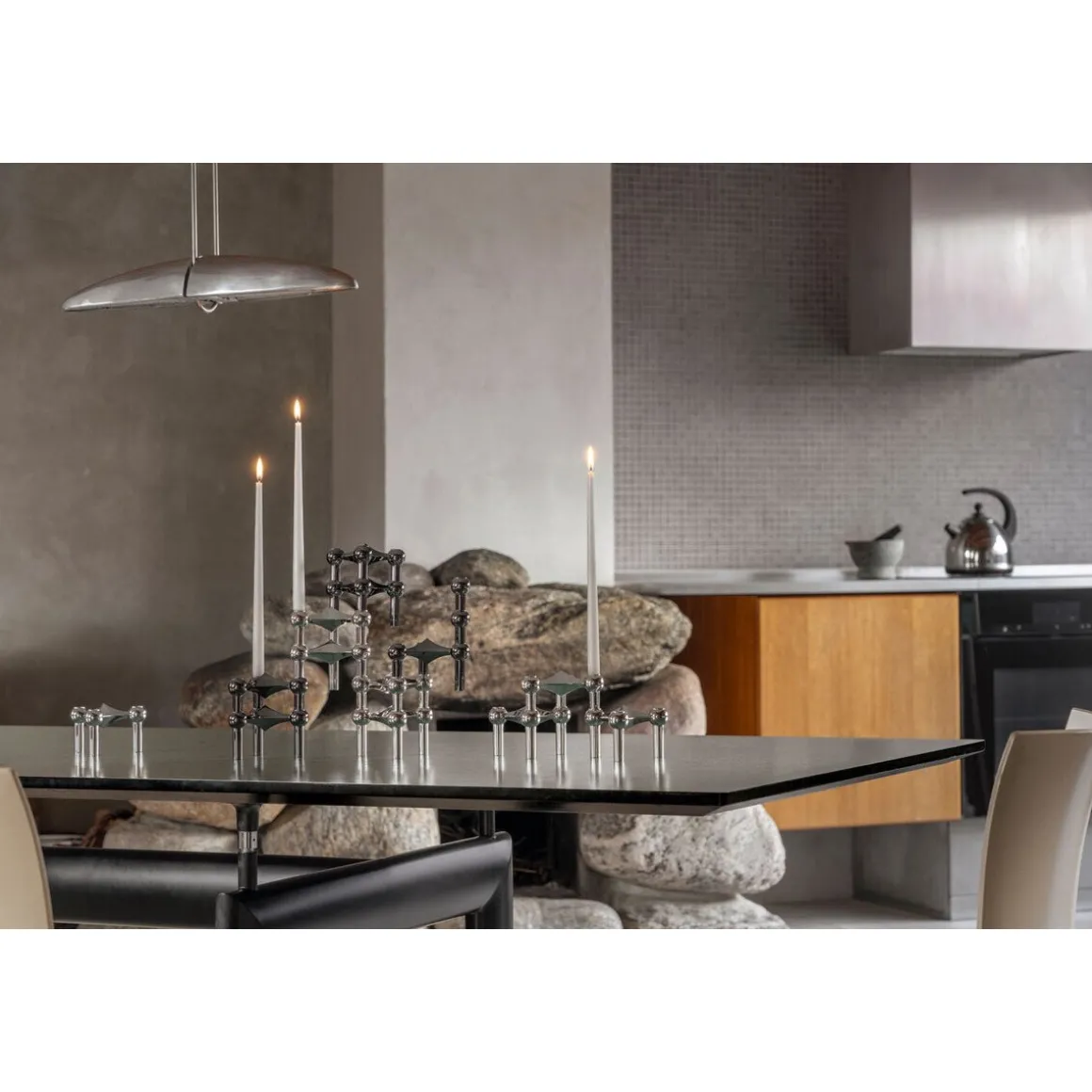 Die Kerzenständer von eignen sich zum kreativen Inszenieren Ihrer Kerzen. Das skulpturale Design und der dunkle Glanz sorgen für einen lebhaften Charme in Ihrer Dekoration. Darüber hinaus sind die Kerzenständer so konzipiert, dass sie sich mühelos zusammensetzen und mit anderen Designs des Herstellers kombinieren lassen.