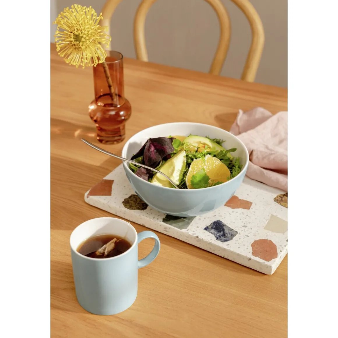 Der Henkelbecher Sunny Day Soft Blue von überzeugt durch den frischen Wind, den er auf die Tafel bringt. Ob Ton-in-Ton oder kontrastierend kombiniert, mit diesem Henkelbecher kommt Leben auf den Frühstückstisch.