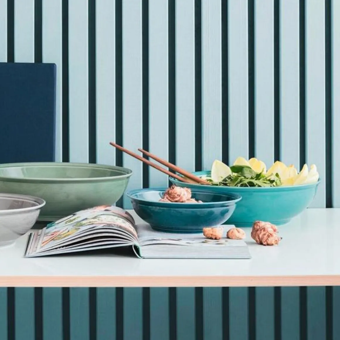 Die Schüssel Trend Colour Night Blue von begeistert durch ihre faszinierende Haptik, die von einer präzisen Rillenstruktur geprägt ist. Das Geschirrstück erinnert an den Glanz kühler, nordischer Nächte und entzückt durch ein kontrastierendes Spiel zwischen dezenter Innen- und akzentuierter Außenseite.