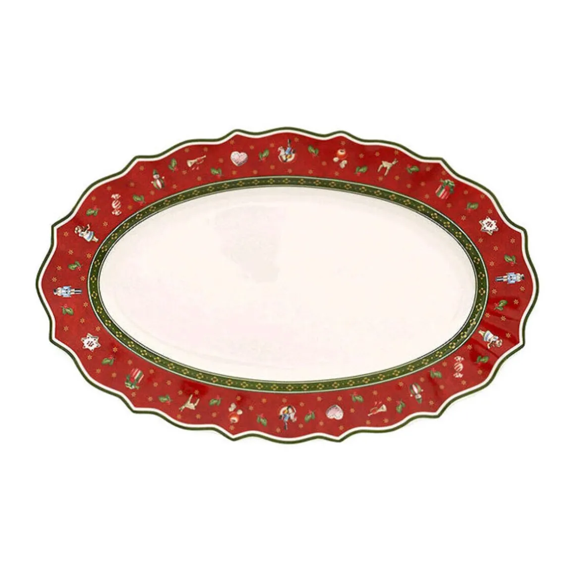 Die Kollektion Toy’s Delight von Villeroy & Boch weckt mit ihren verspielten Motiven in Rot, Grün und Weiß Kindheitserinnerungen und versprüht nostalgischen Charme. Das europäische Traditionsunternehmen Villeroy & Boch steht seit 1748 für Porzellan höchster Qualität.Auf dieser Platte kommen Fleisch oder Beilagen beim festlichen Weihnachtsessen optimal zur Geltung. Gefertigt aus hochwertigem Premium Porcelain. Am besten von Hand reinigen. Wird in Geschenkverpackung geliefert.Überraschen Sie mit Köstlichkeiten, stilvoll arrangiert auf Porzellan von Villeroy & Boch.