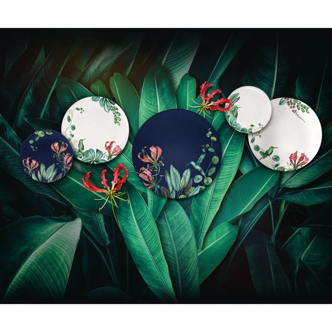 Die Kaffee/Tee-Untertasse Avarua von bringt florale Ästhetik auf Ihre Nachmittagstafel und eignet sich hervorragend zum Reichen kleiner Köstlichkeiten zu Tee oder Kaffee. Das samtige Weiß geht mit den Farben des Dekors eine elegante Harmonie ein und schmückt den Tisch mit einer verführerischen Präsenz. Bereichern Sie Ihre Kaffeetafel mit diesem klar geführten Geschirrstück.